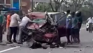 இதில் கார் முன்பகுதி அப்பளம் போல் நொறுங்கியது.