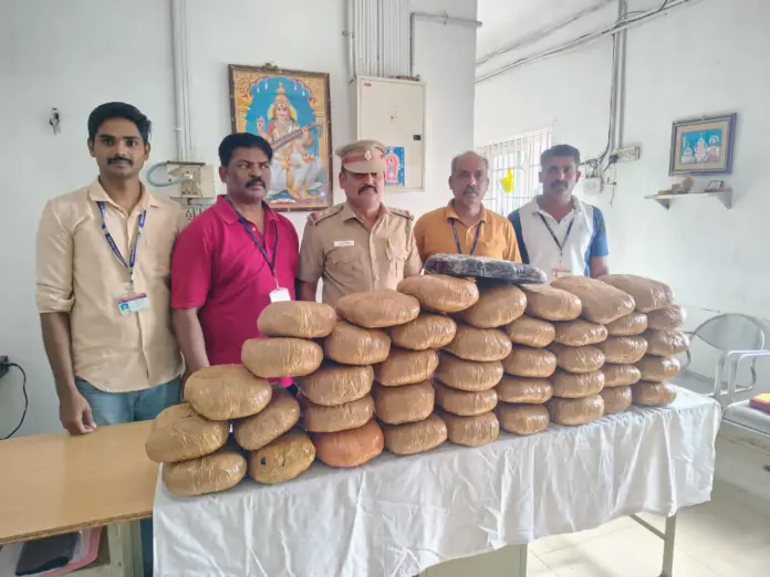 கோவை ரயில் நிலையத்தில் பண்டல் பண்டலாக பறிமுதல் செய்யப்பட்ட கஞ்சா…