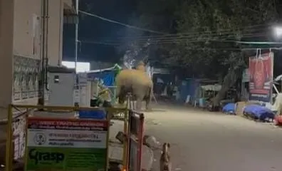 கோவை மருதமலை சுப்பிரமணிய சுவாமி கோவில் அடிவாரப் பகுதியில், நேற்று நள்ளிரவு உணவு தேடி வந்த ஒற்றைக் காட்டு யானையால் பெரும் பரபரப்பு நிலவியது.