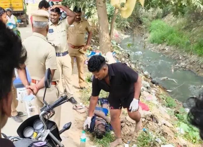 பீளமேடு காவல் நிலையம் முன்பு கழிவுநீர் கால்வாய் ஓடுகிறது. அங்கு இன்று காலை 35 வயது மதிக்கத்தக்க வாலிபர் ஒருவர் சிறுநீர் கழித்துக் கொண்டிருந்தார்.