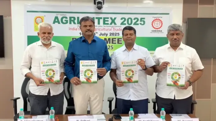 கோவை கொடிசியா தொழில் கூட்டமைப்பு சார்பில் அக்ரி இன்டெக்ஸ் 2025 எனும் வேளாண் கண்காட்சியின் 23-வது பதிப்பு வரும் ஜூலை 10-ம் தேதி முதல் 14-ம் தேதி வரை கொடிசியா தொழிற்காட்சி வளாகத்தில் நடைபெற உள்ளது.