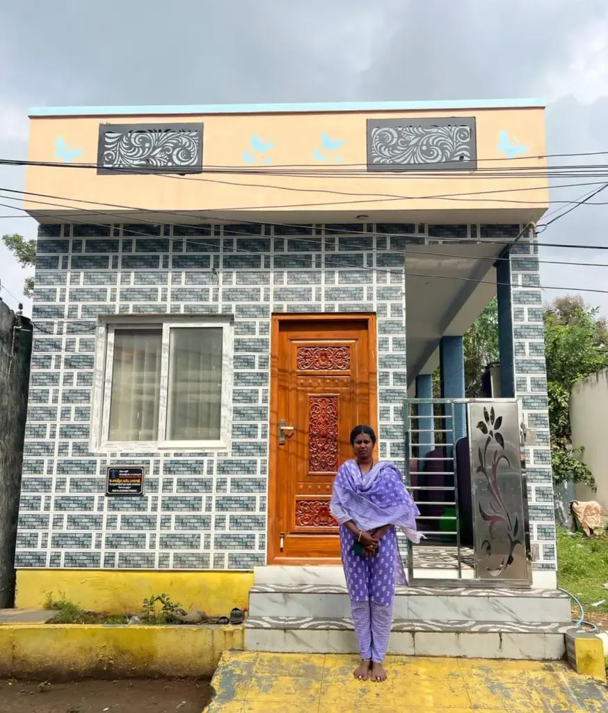 இந்நிலையில் தமிழ்நாடு நகர்ப்புற வாழ்விட மேம்பாட்டு வாரியத்தின் மூலம் அனைவருக்கும் வீடு திட்டத்தின் கீழ் விண்ணப்பித்து 2.10 லட்சம் பெற்று கூடுதலாக மாவட்ட கூட்டுறவு வங்கியில் இருந்து கடன் பெற்று வீடு கட்டி உள்ளனர். பிரதம மந்திரி வீட்டு வசதி திட்டம் மூலம் இவர்களின் வீடானது கட்டப்பட்டுள்ளது.