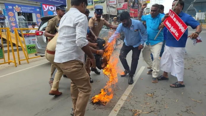 மேலும் இந்த ஆர்ப்பாட்டத்தில் பிரதமர் மோடியின் உருவ பொம்மை எரிக்கப்பட்டதால் பரபரப்பு ஏற்பட்டது.