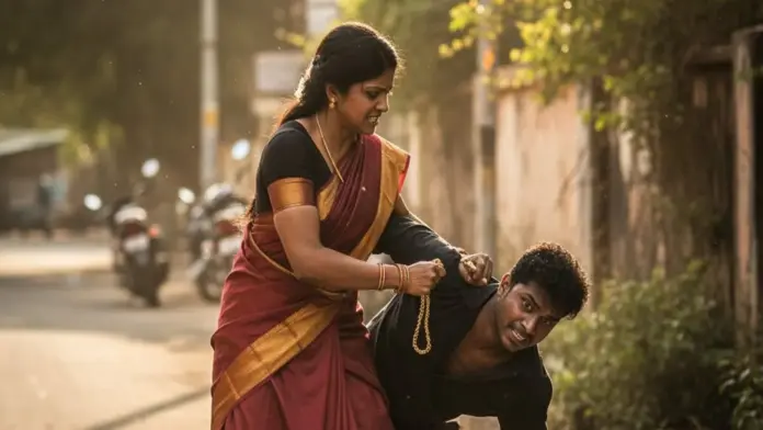 உடனே சுதாகரித்துக் கொண்ட தீபா, செயினை பறிக்க விடாமல் இழுத்துப் பிடித்தார். மேலும், அந்த நபருடன் போராடினார். அதோடு “திருடன் திருடன்” என்று சத்தம் போட்டு அருகில் இருந்தவர்களை உதவிக்கு அழைத்தார்.