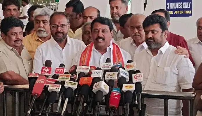 கோவை விமான நிலையத்தில் பாஜக மாநில தலைவர் நயினார் நாகேந்திரன் செய்தியாளர்களை சந்தித்தார்.