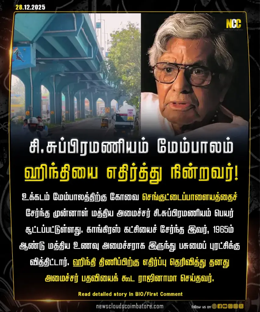 இந்த நிலையில், உக்கடம் மேம்பாலத்திற்கு சி.சுப்பிரமணியம் பெயர் சூட்ட உள்ளதாக முதலமைச்சர் ஸ்டாலின் தெரிவித்துள்ளார்.