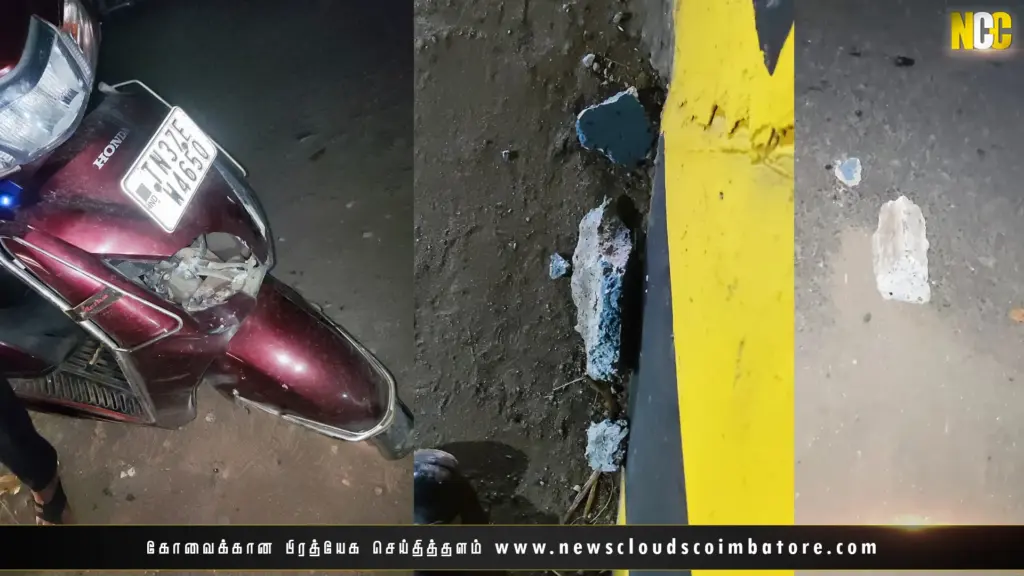 அவரது வாகனத்தின் மீது அந்த கற்கள் விழுந்ததால் வாகன ஓட்டி உயிர் பிழைத்துள்ளார். அவினாசி சாலை புதிய மேம்பாலம் அக்டோபர் 9ஆம் தேதி திறக்கப்படும் என்று அமைச்சர் அறிவித்துள்ள நிலையில், மேம்பாலத்தில் முறையாகக் கண்காணிப்பு பணிகள் மேற்கொள்ளப்படாததால் அவ்வப்போது இது போன்ற விபத்துக்கள் நடப்பது தொடர் கதையாகி வருகிறது.