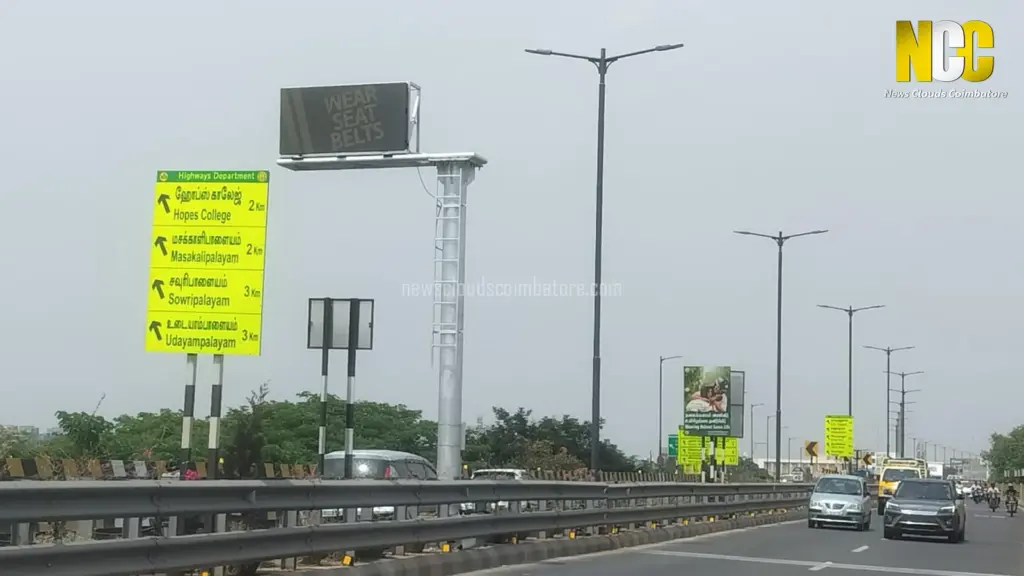 உப்பிலிபாளையம் முதல் கோல்டு வின்ஸ் வரை அமைக்கப்பட்டுள்ள இந்த மேம்பாலத்தில், வாகனங்கள் அதிவேகமாகச் செல்வதால் ஏற்படும் விபத்துகளைத் தவிர்க்க இந்த நடவடிக்கை எடுக்கப்பட்டுள்ளது.