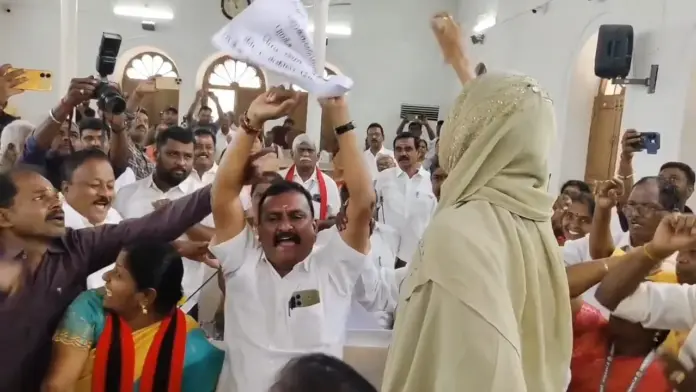 அதே சமயம், தமிழ்நாடு அரசு மெட்ரோ ரயில் திட்ட அறிக்கையை முறையாக தயாரிக்கவில்லை என அதிமுக கவுன்சிலர்கள் ஆர்ப்பாட்டத்தில் ஈடுபட்டனர். பின்னர் மாற்றுத்திறனாளிகள் நியமன உறுப்பினராக பதவியேற்ற குமார ராஜபாண்டியனுக்கு மேயர், கமிஷனர் மற்றும் கவுன்சிலர்கள் வாழ்த்து தெரிவித்தனர்.