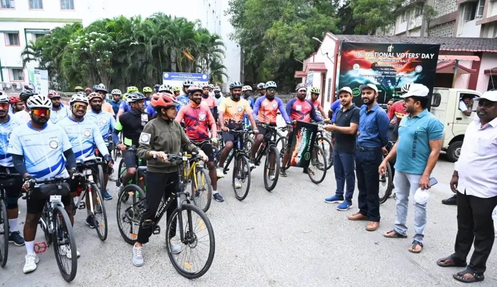 தேசிய வாக்காளர் தினத்தை முன்னிட்டு கோவையில் நடைபெற்ற சைக்கிள் பேரணியில் இளைஞர்களுடன் சேர்ந்து மாவட்ட ஆட்சியரும் சைக்கிள் ஓட்டி விழிப்புணர்வு ஏற்படுத்தினார்.