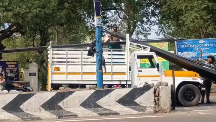 அவ்வாறே இன்று பிற்பகல் திருச்சி சாலையில் ரெயின்போ ஸ்டாப் அருகே ஒரு மினி (பொலிரோ பிக் அப்) சரக்கு வாகனம் இரும்பு பைப்புகளை ஏற்றிக்கொண்டு சென்று கொண்டிருந்தது.