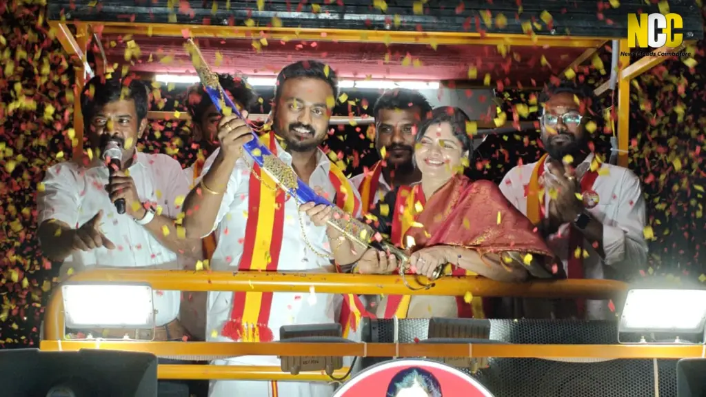 அதே நேரத்தில் கோவை கவுண்டம்பாளையம் தொகுதியில் தவெக சார்பில் போட்டியிடும் வேட்பாளர் கனிமொழி எந்தவித நுணுக்கங்களையும் பயன்படுத்தாமல், மக்களோடு மக்களாக களத்தில் நின்று அவர்களது கோரிக்கைகளை கேட்டறிந்து, அவற்றை கட்டாயம் நிறைவேற்றி தருவேன் என்று கூறி வாக்கு சேகரிப்பில் ஈடுபட்டார்.