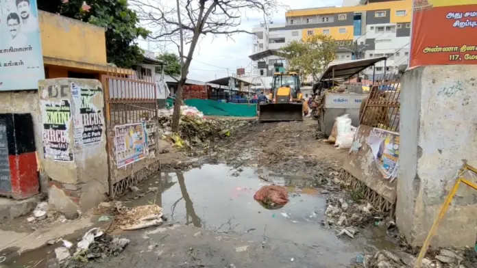 பல வருடங்களாக இதே நிலைதான் தொடர்ந்து வருவதாகவும் மழை பெய்யும் பொழுதெல்லாம் இது போன்ற சேரும் சகதியும் ஆகுமாறு சுகாதார சீர்கேடு ஏற்படுவதாக தெரிவித்துள்ள வியாபாரிகள் இது குறித்து மாநகராட்சி அதிகாரிகளிடம் தெரிவித்தாலும் நிரந்தர தீர்வு காண்பதற்கு எந்த ஒரு நடவடிக்கையும் எடுக்கப்படுவதில்லை என கூறினர்.