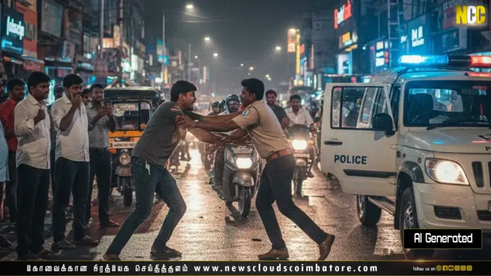 அப்போது நள்ளிரவில் சரவணம்பட்டி, துடியலூர் சாலையில் நடுரோட்டில் 3 வாலிபர்கள் மது குடித்துக் கொண்டிருந்தனர். அதனைப் பார்த்த போலீசார் அவர்களை எச்சரித்து அங்கிருந்து செல்லும்படி கூறியுள்ளனர்.