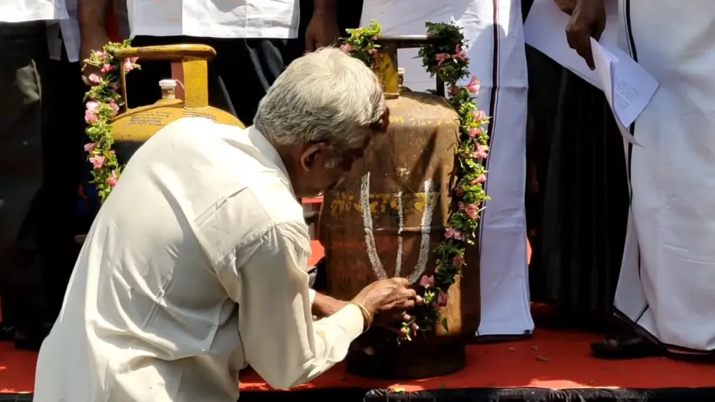 வணிக சிலிண்டர்களுக்கு நாமம்- கோவையில் ஆர்ப்பாட்டம்…
