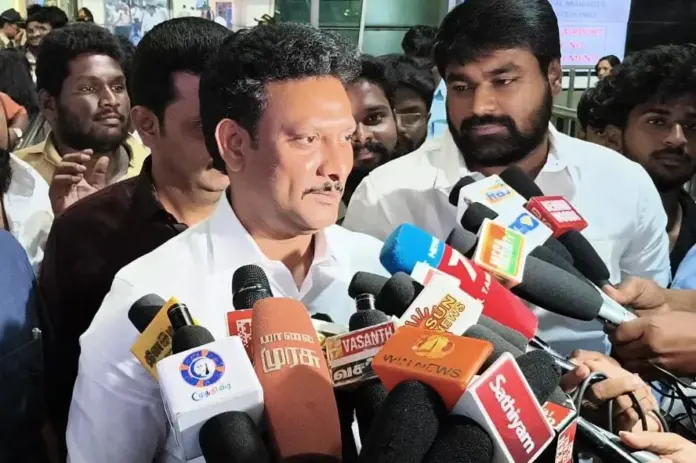 கோவை விமான நிலையத்தில் தமிழக பள்ளி கல்வித்துறை அமைச்சர் அன்பில் மகேஷ் செய்தியாளர்களை சந்தித்தார்.