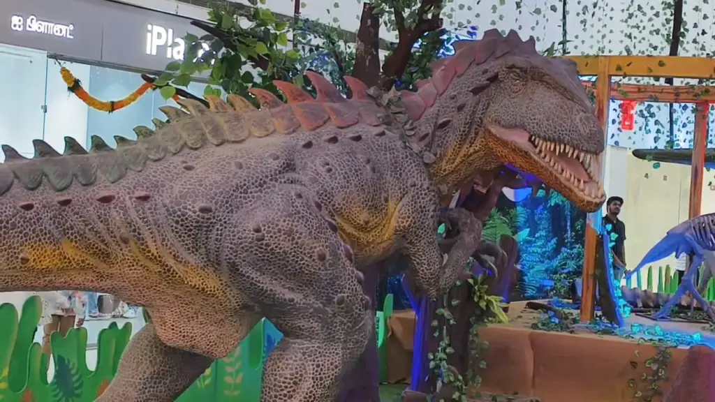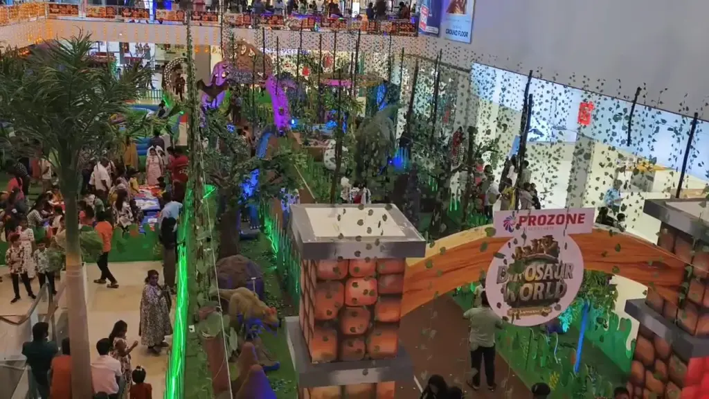கோவை ப்ரோசோன் மாலில் தீபாவளி பண்டிகையை முன்னிட்டு குழந்தைகளை உற்சாகப்படுத்தும் டைனோசர் உலகம், பல்வேறு விளையாட்டுகள் ஆகியவை துவங்கியுள்ளன.