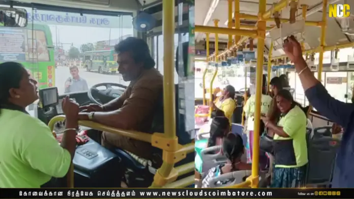 கடந்த வாரம் வெள்ளக்கிணறு பகுதியில் இருந்து துடியலூர் செல்லும் 111 என்ற எண் கொண்ட அரசு பேருந்தில் பெண் தூய்மை பணியாளர்கள் ஏறியுள்ளனர்.
