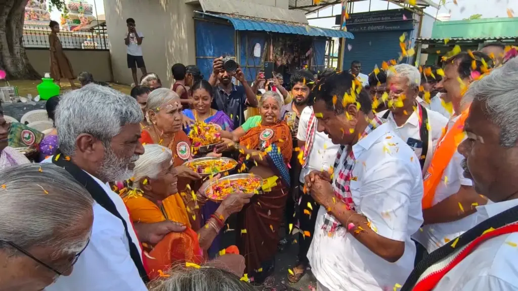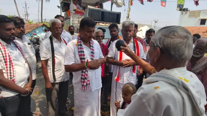 அவருக்கு பெண்கள் ஆரத்தி எடுத்தும், பூசணிக்காய் மற்றும் சுற்றி த்ருஷ்டி கழித்தும், ஏலக்காய் மாலை அணிவித்து சிறப்பான வரவேற்பு வழங்கினர். உடன் 50க்கும் மேற்பட்ட இளைஞர்கள் இருசக்கர வாகனங்களில் உடன் சென்று வாக்கு சேகரித்தனர்.