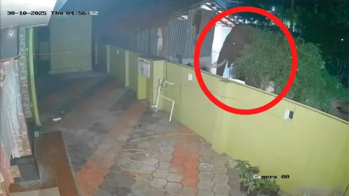 காட்டுயானை கொட்டகை கதவை உடைத்து கொண்டு உள்ளே சென்று மாட்டுத்தீவனங்களை தின்றது அங்கு பொருத்தப்பட்டிருந்த சிசிடிவி கேமராவில் பதிவான நிலையில் தற்பொழுது அந்த காட்சிகள் வெளியாகி உள்ளன.