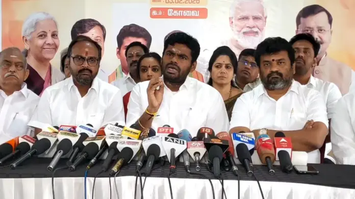 2026 மத்திய பட்ஜெட் குறித்து பா.ஜ.க முன்னாள் மாநில தலைவர் அண்ணாமலை அவிநாசி சாலையில் உள்ள தனியார் ஹோட்டலில் செய்தியாளர்களுக்கு பேட்டியளித்தார். அப்போது பேசிய அவர் மத்திய பட்ஜெட்டில் உட்கட்டமைப்புக்கு அதிக நிதி ஒதுக்கப்பட்டு உள்ளது என்றார். தமிழக அரசு பட்ஜெட் நான்கு லட்சம் கோடிக்கு போடப்பட்டாலும், செலவினம் அதிகம் உள்ளது என கூறினார்.