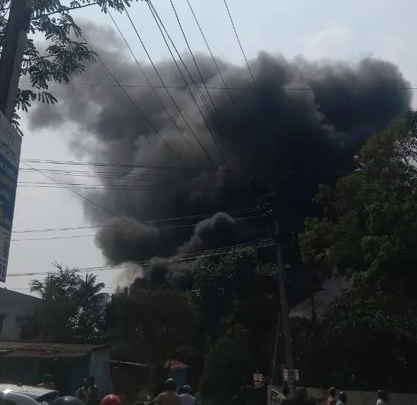 குடோனில் தீ பிடிப்பு ஏற்பட்டு அதிக அளவிலான கரும்புகை வெளியேறியதால் அப்பகுதியில் பரபரப்பான சூழல் நிலவியது.