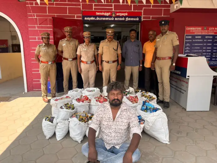 தமிழ்நாட்டில் குட்கா, பான்மசாலா உள்ளிட்ட போதைப் பொருட்கள் விற்பனை தடை செய்யப்பட்டுள்ள நிலையில் கோவை மாநகர காவல் ஆணையர் அறிவுறுத்தலின் பெயரில், கோவை மாநகர காவல் வடக்கு துணை ஆணையர் உத்தரவுபடி, சாய்பாபா காலனி சரக காவல் உதவி ஆணையர் வழிகாட்டுதலின் பேரில் கவுண்டம்பாளையம் காவல் நிலைய ஆய்வாளர் தலைமையில், இது தொடர்பான தனிப்படை அமைக்கப்பட்டது.