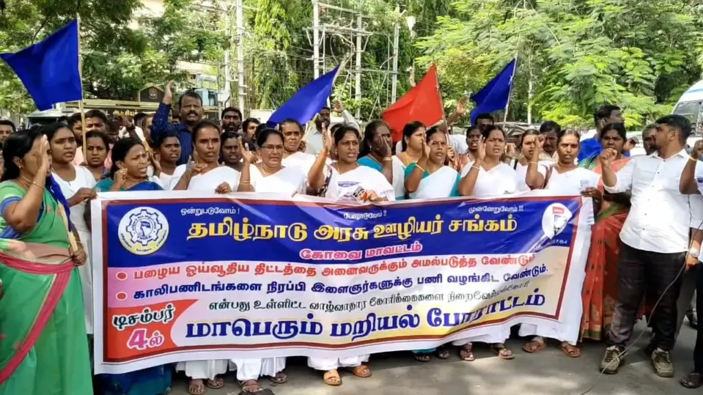 பழைய ஓய்வூதிய திட்டத்தை அமல்படுத்த வேண்டும், காலி பணியிடங்களை உடனடியாக நிரப்ப வேண்டும், சிறப்பு காலம் வரை தொகுப்பு ஊதியம் மதிப்பூரியத்தில் பணியாற்றும் ஊழியர்களுக்கு ஊதியம் சட்டபூர்வமான ஓய்வூதியம் வழங்க வேண்டும்.