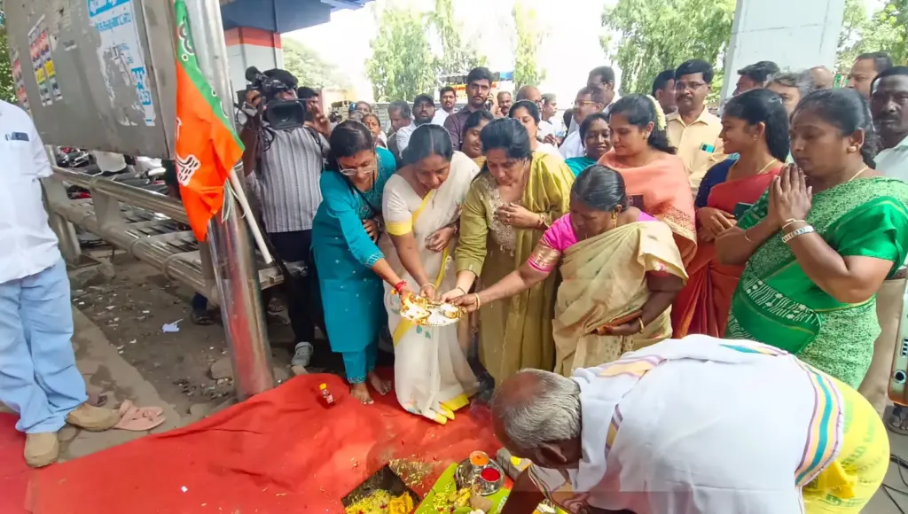 இதில், பாஜக தேசிய மகளிர் அணி தலைவரும், கோவை தெற்கு தொகுதி சட்டமன்ற உறுப்பினருமான வானதி சீனிவாசன் கலந்துகொண்டு புதிய பேருந்து நிழற்குடை கட்டுமான பணிகளை துவக்கி வைத்தார்.