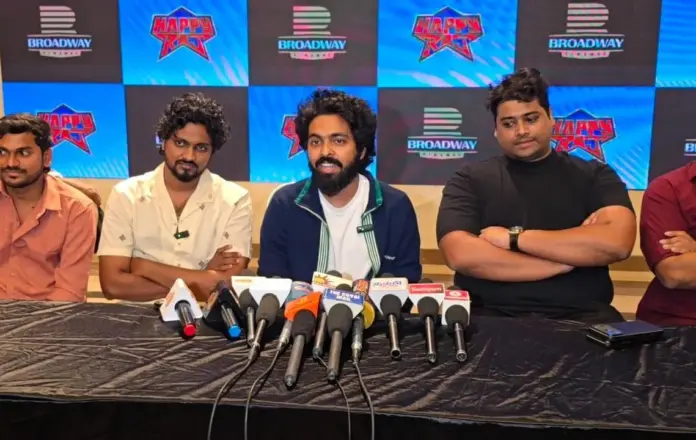 கோவை பிராட்வே திரையரங்கில் நடிகர் ஜி.வி. பிரகாஷ் மற்றும் ‘ஹேப்பிராஜ்’ படக்குழுவினர் நேற்று செய்தியாளர்களை சந்தித்தனர். வரும் மார்ச் 27 தேதி படம் வெளியாக உள்ள நிலையில் இதில் படத்தின் சிறப்பம்சங்கள் குறித்து ஜிவி விளக்கமளித்தார். ‘ஹேப்பிராஜ்’ திரைப்படம் இளைஞர்களுக்கு பிடிக்கும் வகையில், குடும்பத்துடன் இணைந்து ரசிக்கும் படமாக உருவாக்கப்பட்டுள்ளது என்றும் படம் வெறும் பொழுதுபோக்கு மட்டுமல்லாமல், ஒரு முக்கியமான செய்தியையும் கொண்டுள்ளது. குறிப்பாக பெற்றோரின் முக்கியத்துவத்தை படம் மூலம் வெளிப்படுத்தியுள்ளோம் என்றார்.