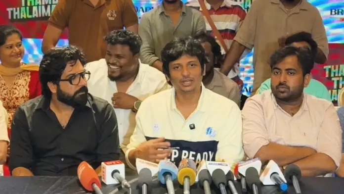 இயக்குனர் நிதிஷ் சகாதேவ் இயக்கத்தில் நடிகர்கள் ஜீவா, இளவரசு, தம்பி ராமையா, பிரார்த்தனா நாதன், உள்ளிட்டோர் நடிப்பில் வெளியாகியுள்ள தலைவர் தம்பி தலைமையில் திரைப்படம் திரையரங்குகளில் ஓடி வருகிறது.