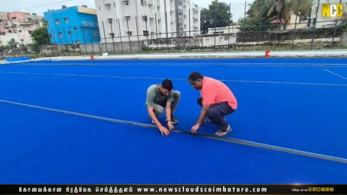 கோவை: கோவை மாநகராட்சி சர்வதேச ஹாக்கி மைதானத்தை ஆர்எஸ் புரத்தில் அமைத்து வருகிறது.