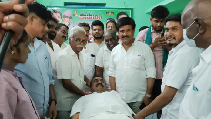 தொடர்ந்து, முன்னாள் அமைச்சர் எஸ்.பி.வேலுமணி ரத்த தானம் செய்தார். அவரைத் தொடர்ந்து ஏராளமான அதிமுக தொண்டர்களும் ரத்த தானம் செய்தனர்.