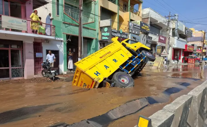 கோவை: கோவை போத்தனூர் பகுதியில் தண்ணீர் குழாய் உடைந்து ஏற்பட்ட மண் அரிப்பு அவ்வழியாக சென்ற லாரி சிக்கியதால் பரபரப்பு ஏற்பட்டது.