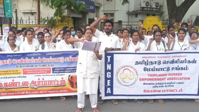 மேலும், தேர்தல் காலத்தில் திமுக அரசு ஆட்சி அமைந்ததும் அனைத்து செவிலியர்களையும் பணி நிரந்தரம் செய்வோம் என வாக்குறுதி அளிக்கப்பட்டதாகவும், ஆனால் ஆட்சி அமைந்து நீண்ட காலம் ஆகியும் செவிலியர்களின் கோரிக்கைகள் நிறைவேற்றப்படவில்லை என்றும் அவர்கள் குற்றம்சாட்டினர்.