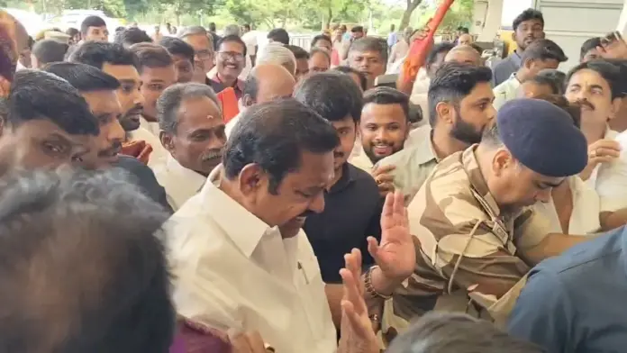 அதிமுக பொதுச் செயலாளர் எடப்பாடி பழனிச்சாமி சென்னை செல்வதற்காக சேலத்தில் இருந்து கோவை விமான நிலையம் வந்தடைந்தார். கோவை விமான நிலையத்தில் அதிமுக சட்டமன்ற உறுப்பினர்கள் அவரை வரவேற்றனர். மேலும் அதிமுக தொண்டர்கள் உற்சாக முழக்கங்கள் எழுப்பி வரவேற்றனர்.