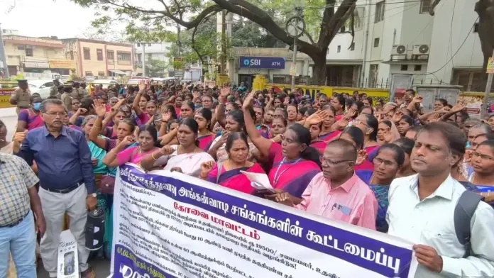 அங்கன்வாடிக்கு கோடை விடுமுறை தற்காலிக பணி நீக்க காலத்தில் பிழைப்பூதியம் ஓய்வூதியர்களுக்கு அகவிலைப்படி தேசிய மருத்துவ காப்பீடு மகப்பேறு விடுப்பு 12 மாதம், உள்ளிட்ட பல்வேறு கோரிக்கைகளை வலியுறுத்தி அவர்கள் தொடர் போராட்டங்களை முன்னெடுத்து வருகின்றனர்.
