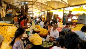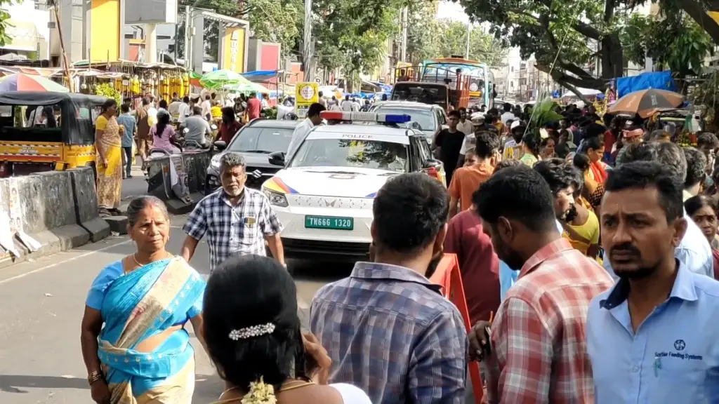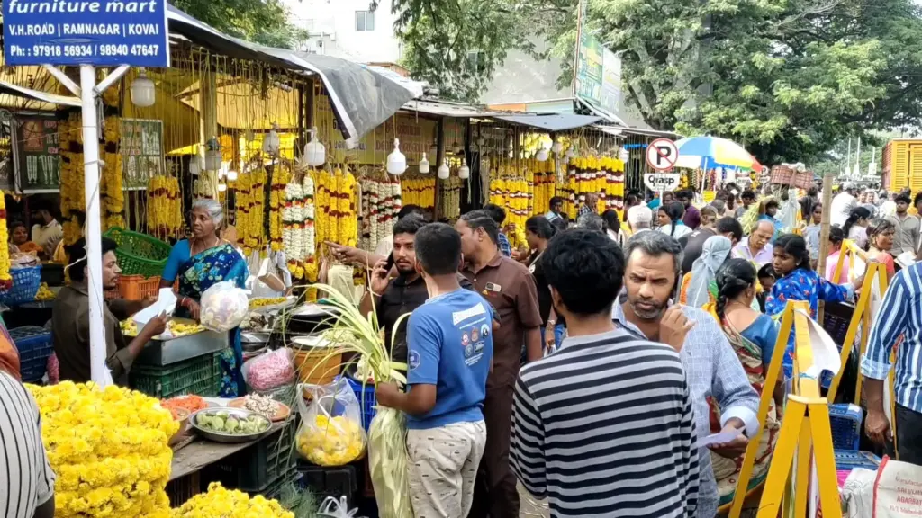 அதன்படி கோவையில் பூ மார்க்கெட் பகுதியில் அனைத்து பொருட்களும் கிடைப்பதால் பொதுமக்கள் பலரும் பூ மார்க்கெட்டிற்கு வந்து பொருட்களையும் வாங்கி செல்கின்றனர். இதனால் இப்பகுதியில் அதிகளவு கூட்டமானது காணப்பட்டது. அதனால் ஏற்படும் போக்குவரத்து நெரிசலை காவல்துறையினர் சரி செய்தனர்.