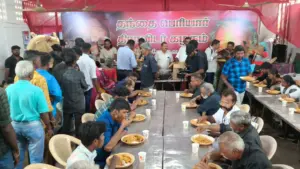பீப் பிரியாணி விருந்தினை துவக்கி வைத்து பொது மக்களுக்கு வழங்கினார். இதனை பொதுமக்கள் பலரும் உண்டு ரசித்தனர். உணவில் பாகுபாடு காட்டக் கூடாது என்பதற்காக பீப் பிரியாணி வழங்கும் நிகழ்ச்சியை ஆண்டுதோறும் நடத்தி வருவதாக தெரிவித்துள்ளார்.