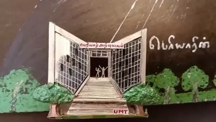 கோவை: 7 கிராம் வெள்ளியில் பெரியார் அறிவுலகம் மினியச்சர் செய்து அசத்தியுள்ளார் கோவையை சேர்ந்த கலைஞர் UMT ராஜா.