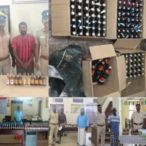 கோவை மாவட்டம் முழுவதும் சட்டத்திற்கு விரோதமாக மது பாட்டில்களை பதுக்கி விற்பனைக்கு வைத்து இருந்த 60 நபர்களை கைது செய்து அவர்களிடம் இருந்து மொத்தம் 1,989 மது பாட்டில்கள் மற்றும் சுமார் 99 லிட்டர் கள் ஆகியவற்றை பறிமுதல் செய்து, மேற்படி நபர்கள் மீது வழக்குப் பதிவு செய்து விசாரணை நடத்தி வருகின்றனர்.