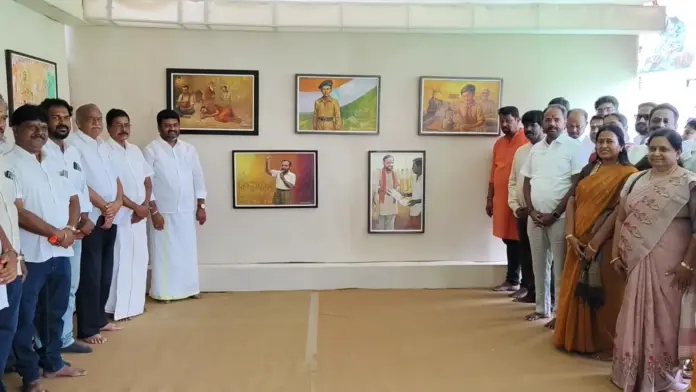 இதன் ஒரு பகுதியாக, நிகழ்ச்சி நடைபெற உள்ள கோவை கணபதி வாஜ்பாய் திடலில் பிரதமர் நரேந்திர மோதியின் 75வது பிறந்த நாளை முன்னிட்டு, 75 ஓவியங்கள் இடம் பெற்றுள்ள கண்காட்சி இன்று துவங்கப்பட்டது.