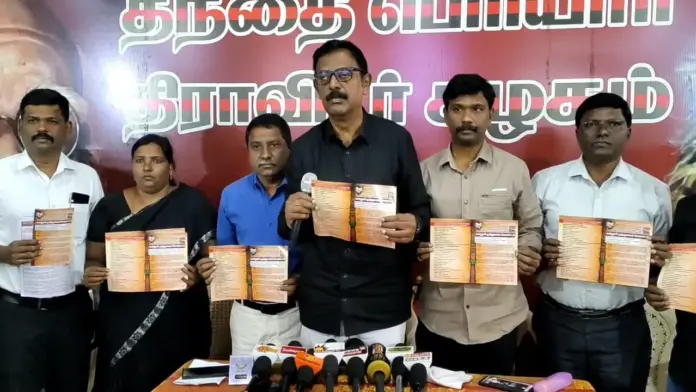 இந்நிலையில் இது குறித்தான செய்தியாளர் சந்திப்பு காந்திபுரம் பகுதியில் உள்ள பெரியார் படிப்பகத்தில் நடைபெற்றது. இதில் செய்தியாளர்களை சந்தித்த தந்தை பெரியார் திராவிடர் கழகப் பொதுச் செயலாளர் கு.இராமகிருட்டிணன், வரலாற்றில் சிந்து சமவெளி நாகரிகம் என்பதே முதன்மையானது என்று வரலாற்று ஆய்வாளர் ஜான் மாக்சன் தெரிவித்திருந்த நிலையில் சரஸ்வதி நாகரிகம் என்ற ஒன்றே இல்லை, இந்த நிலையில் வரலாற்றை திருடும் வகையில் தென்னிந்திய ஆய்வு மையம் அந்த கருத்தரங்கை நடத்துவதாக குற்றம் சாட்டினார்.