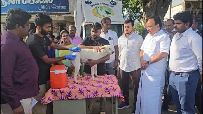 2026 பிப்ரவரி மாதங்களுக்குள் அனைத்து நாய்களுக்கும் ரேபிஸ் எதிர்ப்பு தடுப்பூசி போட நடவடிக்கை எடுக்கப்பட்டு வருகிறது. இதற்காக கோவை மாநகராட்சியில் தற்போது நாய்களைப் பிடிக்கும் பணியை மேற்கொள்ள 2 வாகனங்கள் பயன்பாட்டில் உள்ளன.