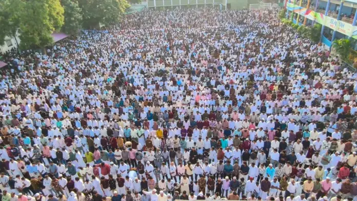 இந்த சிறப்பு தொழுகையில் புத்தாடைகள் அணிந்து சிறப்பு தொழுகையில் பங்கேற்ற இஸ்லாமியர்கள் ஒருவருக்கு ஒருவர் கட்டித் தழுவி ரம்ஜான் வாழ்த்துகளை தெரிவித்துக் கொண்டனர். ஒரே இடத்தில் 10,000க்கும் மேற்பட்டோர் தொடர்ச்சியாக வருகை புரிந்து தொழுகை மேற்கொண்டனர்.