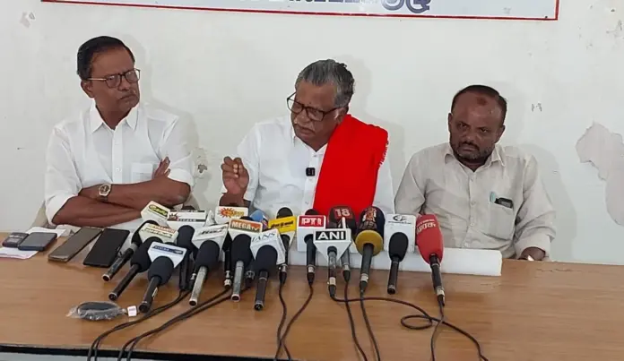 கோவையில் உள்ள இந்திய கம்யூனிஸ்ட் கட்சி அலுவலகத்தில், CPI முன்னாள் மாநிலத் தலைவர் முத்தரசன் செய்தியாளர்களை சந்தித்தார். அப்போது பேசிய அவர் மத்திய அரசானது தொழிலாளர் துரோக சட்டத்தை அமல்படுத்த ஏற்பாடு செய்துள்ளதாகவும் அவசர அவசரமாக இந்த சட்டத்தை கொண்டு வந்து இருக்கின்றது என்றார். இதை எதிர்த்து இன்று இடதுசாரி இயக்கங்கள் போராட்டம் நடத்துகின்றனர் என்றார்.