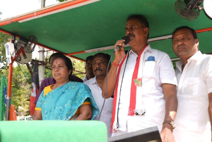 அப்பொழுது அவர் பேசுகையில் அ.தி.மு.க தலைமையிலான என்.டி.ஏ கூட்டணி கட்சியினுடைய அனைத்து கட்சித் தலைவர்களுடைய நல்ல ஆதரவுகளுடன், இன்று வெற்றி வேட்பாளராக போட்டியிடக் கூடிய வானடி சீனிவாசன் எளிமையானவர், கூப்பிட்ட குரலுக்கு ஓடி வரக்கூடியவர் என்றார்.