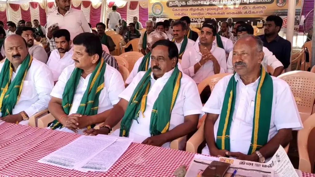 கோவை கிழக்கு புறவழிச் சாலை திட்டத்தை தமிழ்நாடு அரசு கைவிட வலியுறுத்தி கோவையில் விவசாயிகள் உண்ணாவிரத போராட்டம் மேற்கொண்டு வருகின்றனர்.