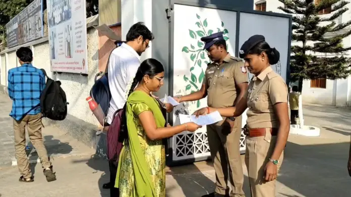 தேர்வு எழுத வரும் அனைத்து தேர்வர்களும் சோதனைக்குப் பிறகு தேர்வு மையத்திற்குள் அனுமதிக்கப்பட்டனர். மேலும் தேர்வர்கள் ஸ்மார்ட் வாட்ச், கால்குலேட்டர் செல்போன் உள்ளிட்ட மின்னணு பொருட்களை கொண்டு செல்ல அனுமதி மறுக்கப்பட்டுள்ளது எனவே அனைவரின் உடமைகளும் சோதனை செய்த பிறகே அனுமதிக்கப்பட்டனர்.
