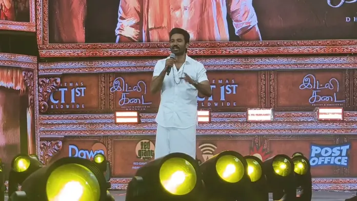 பாடகி ஸ்வேதா மோகனுடன் இணைந்து இட்லி கடை படத்தில் இடம்பெற்ற பாடல் பாடி ரசிகர்களுக்கு தனுஷ் உற்சாக மூட்டினார்.